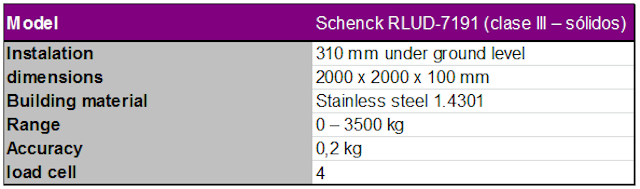 - Balanza de masa: hasta 3500 kg, precisión 0.2kg