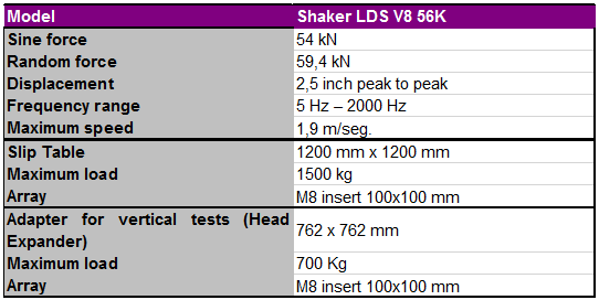 - Sistema de adquisición y control: Spectral Dynamics JAGUAR 2570 70 + 196 canales 15 salidas de control